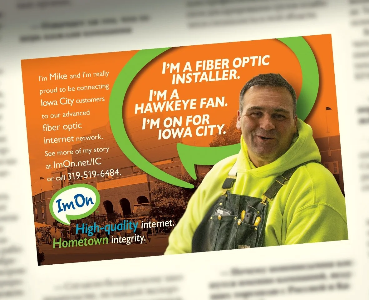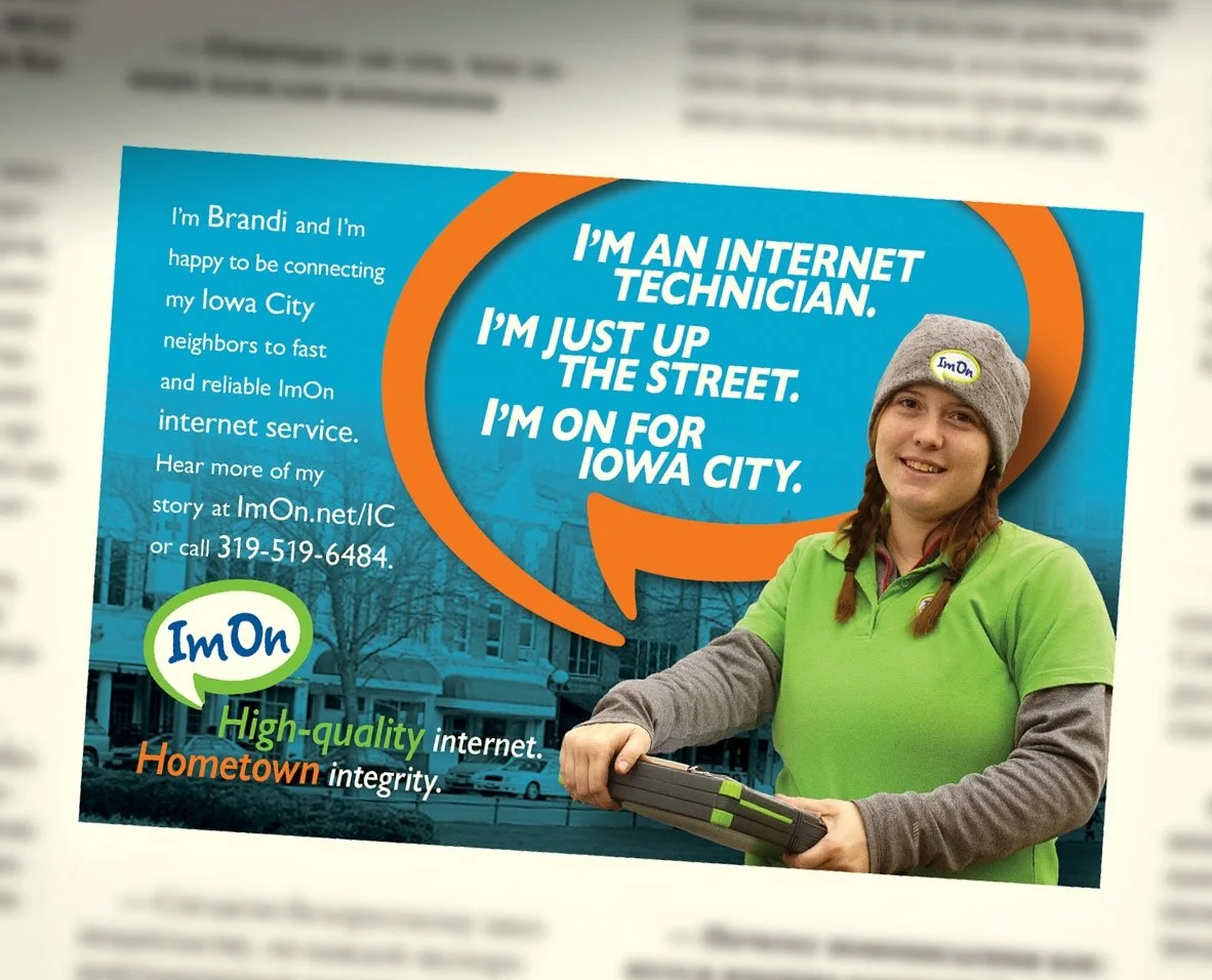 ImOn Communications is an award-winning provider of telecommunications services for residents and businesses in eastern Iowa. We focused their communications on the “we’re your neighbors” message as their biggest competitor was a national chain.